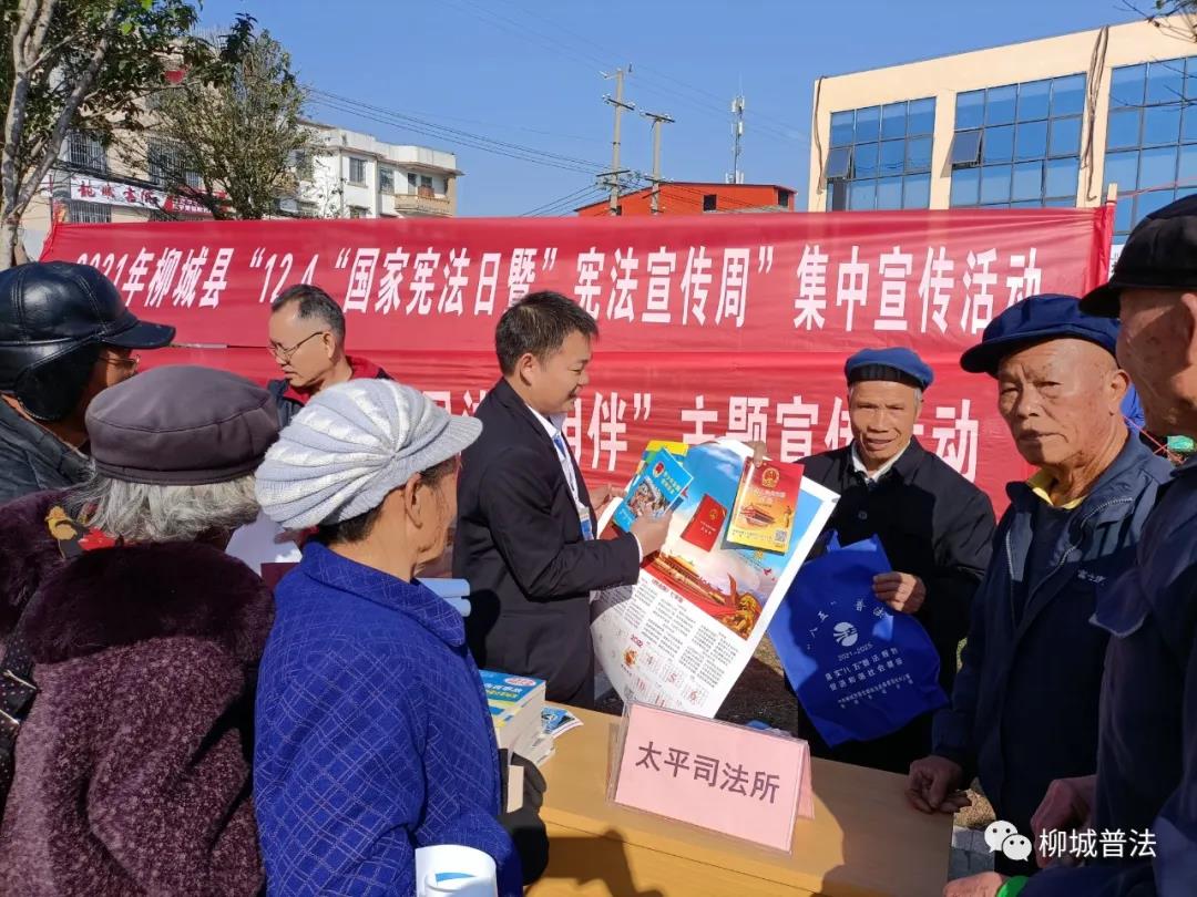 12月7日上午,太平镇利用赶圩日在太平镇文化广场开展普法宣传活动。活动现场,各部门工作人员悬挂横幅、设置咨询台,现场解答群众各类法律问题,为群众提供现场法律咨询50余人次,工作人员还向群众发放了有关《中华人民共和国宪法》《中华人民共和国民法典》、禁毒、反邪教等各类宣传资料共2000余份。