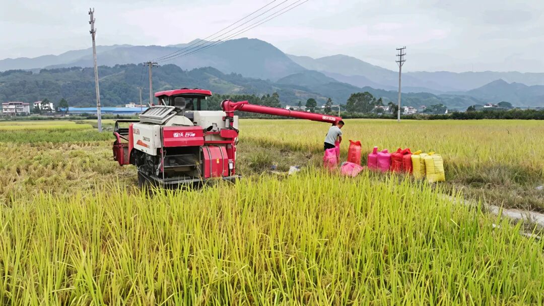 晚稻喜获丰收 千亩金黄绘就乡村振兴好“丰”景