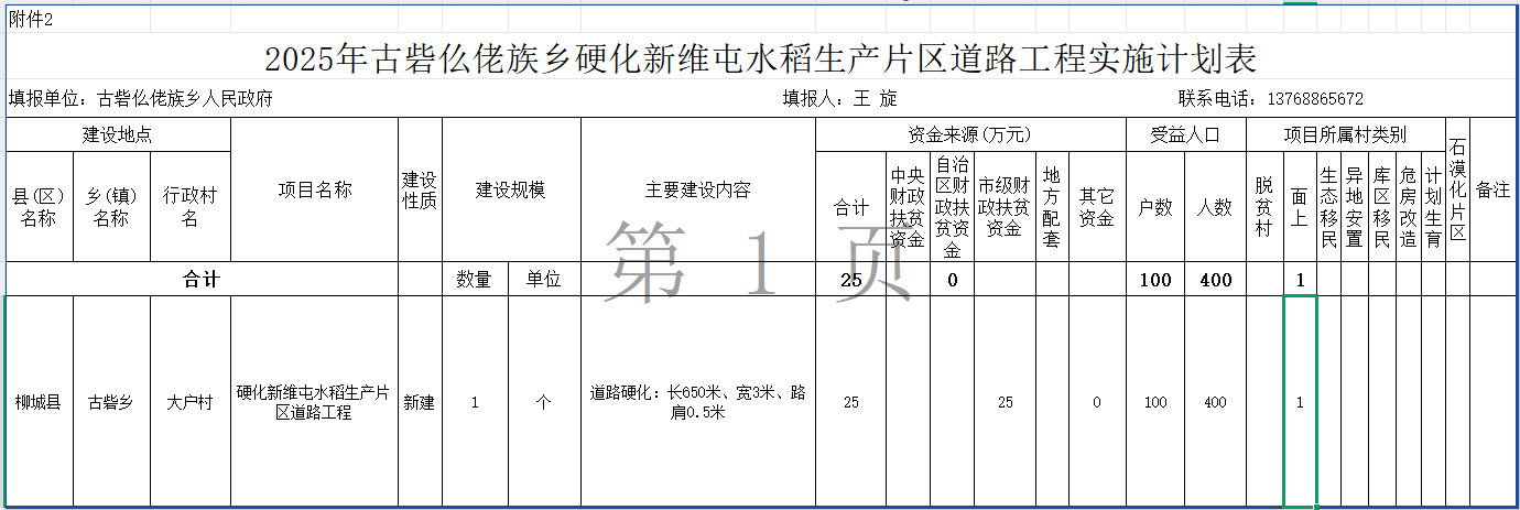 2025年古砦仫佬族乡硬化新维屯水稻生产片区道路工程项目邀标公示
