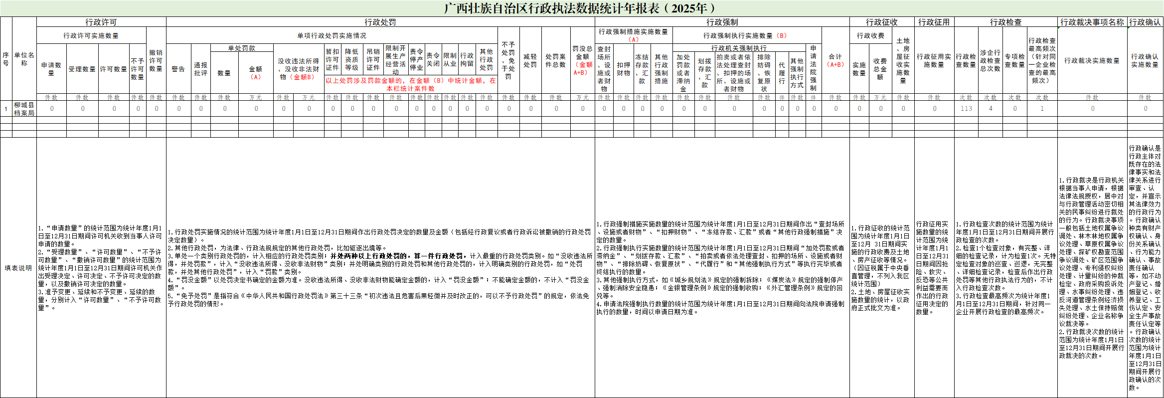 柳城县县档案局2025年度行政执法数据统计年报表