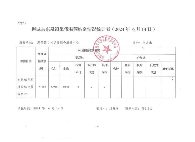 柳城县东泉镇采伐限额结余情况统计表(2024年6月14日)