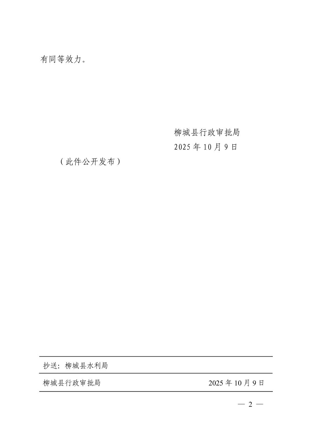 柳城县行政审批局关于同意皇后滩水电站取水许可证延续的通知