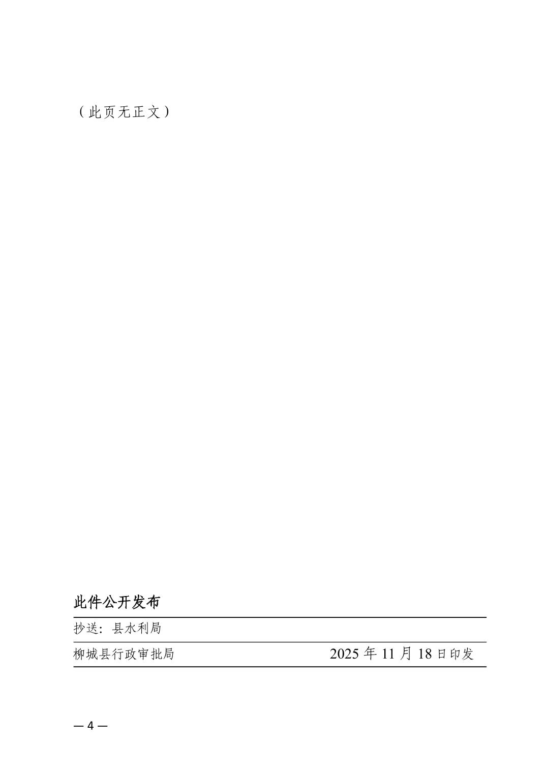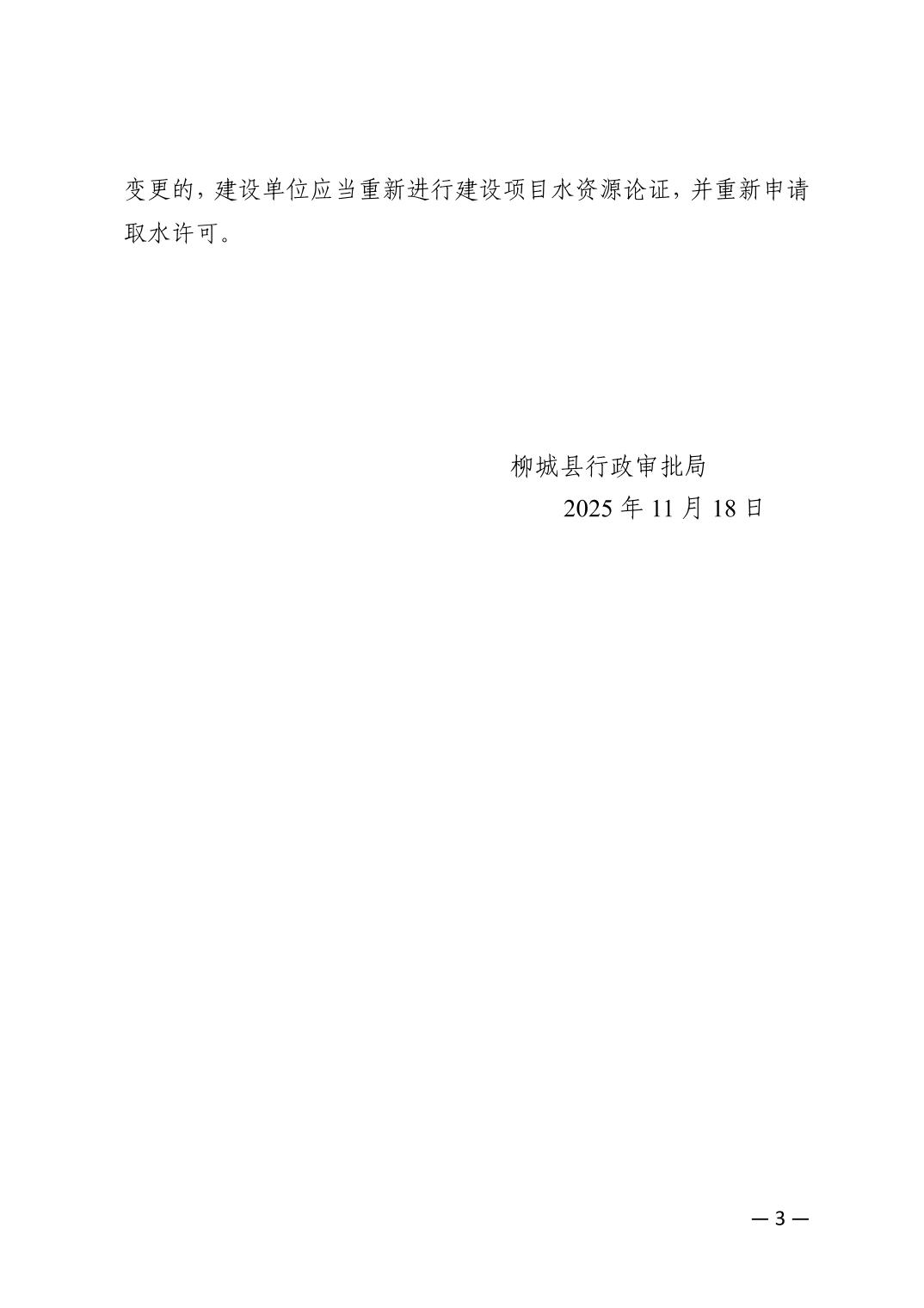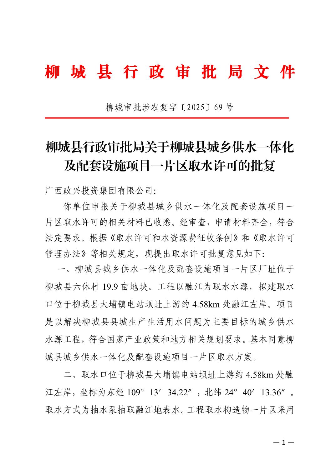 柳城县行政审批局关于柳城县城乡供水一体化及配套设施项目一片区取水许可的批复