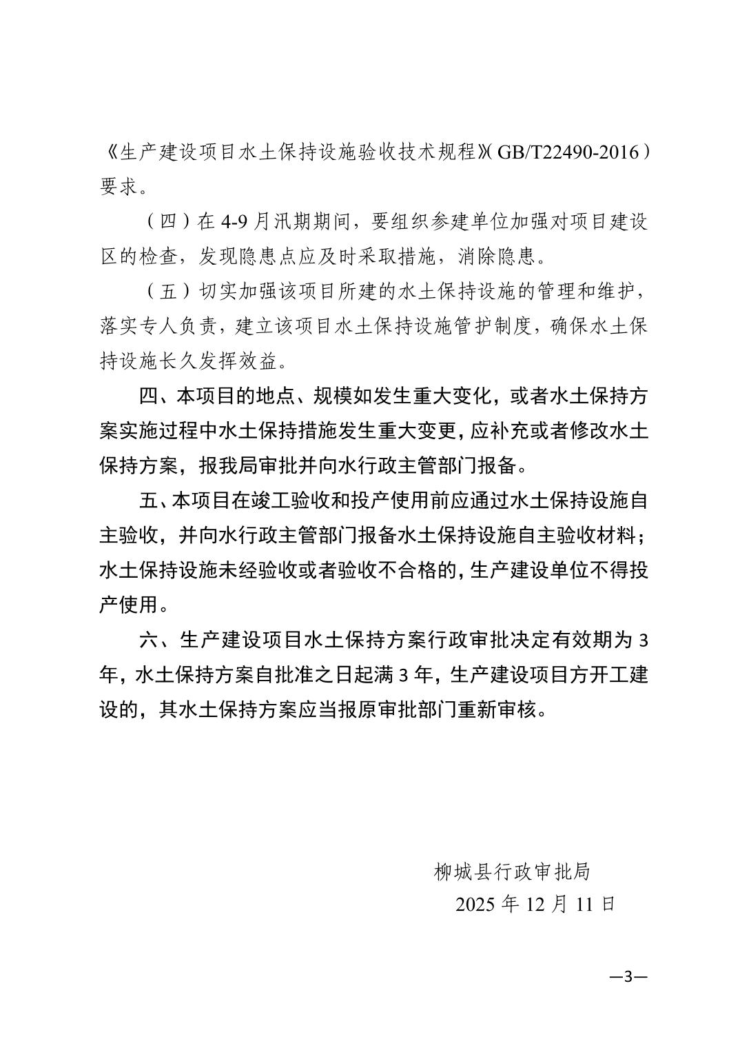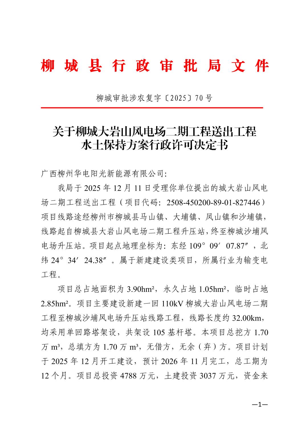关于柳城大岩山风电场二期工程送出工程水土保持方案行政许可决定书