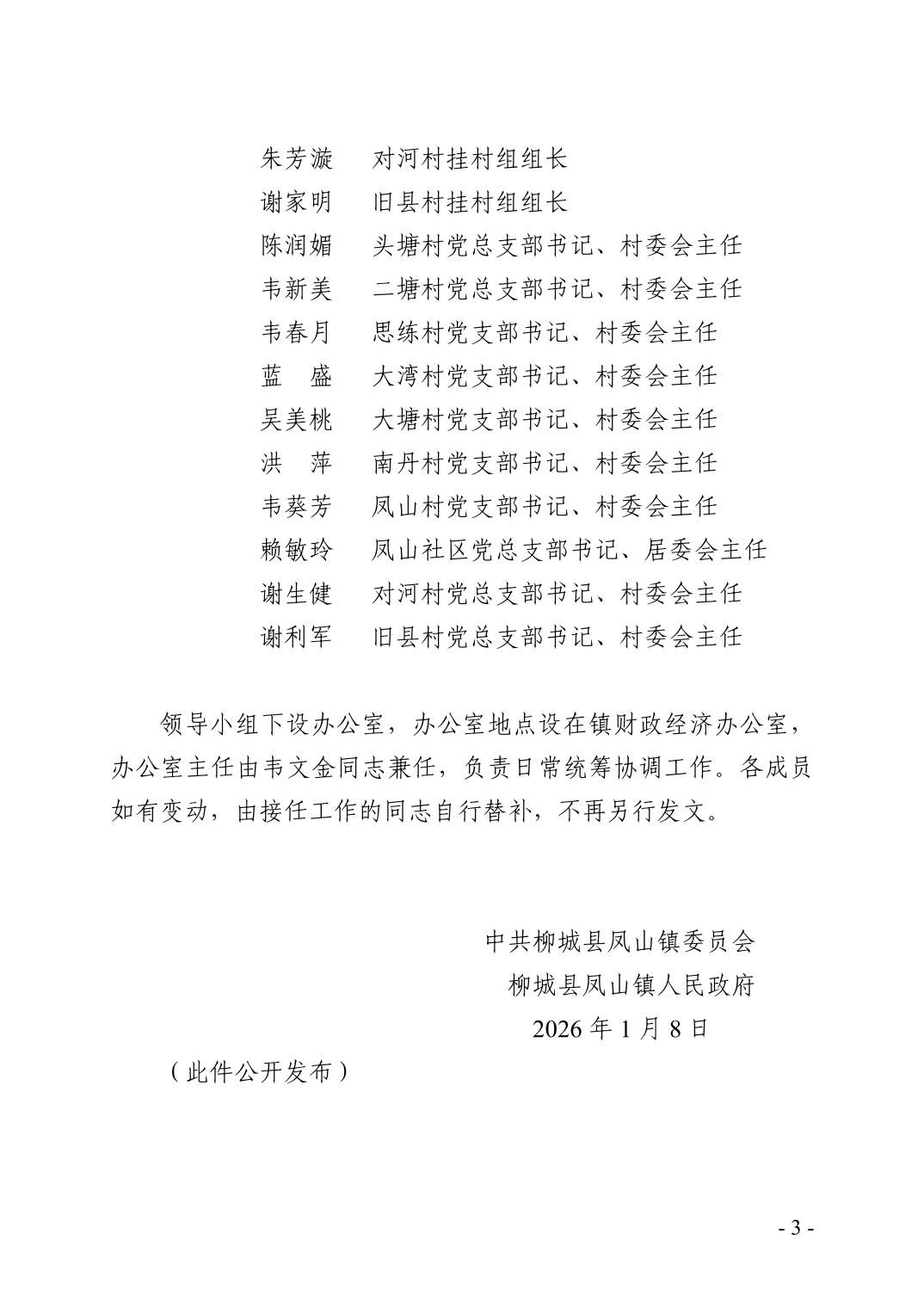 中共柳城县 凤山镇委员会文件 凤发〔2026〕1号 ★ 中共凤山镇委员会 凤山镇人民政府 关于成立第四次全国农业普查工作领导小组 的通知