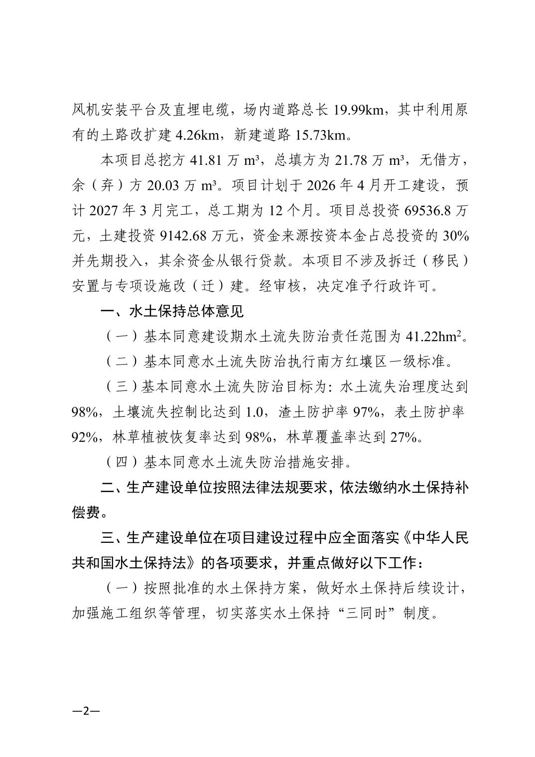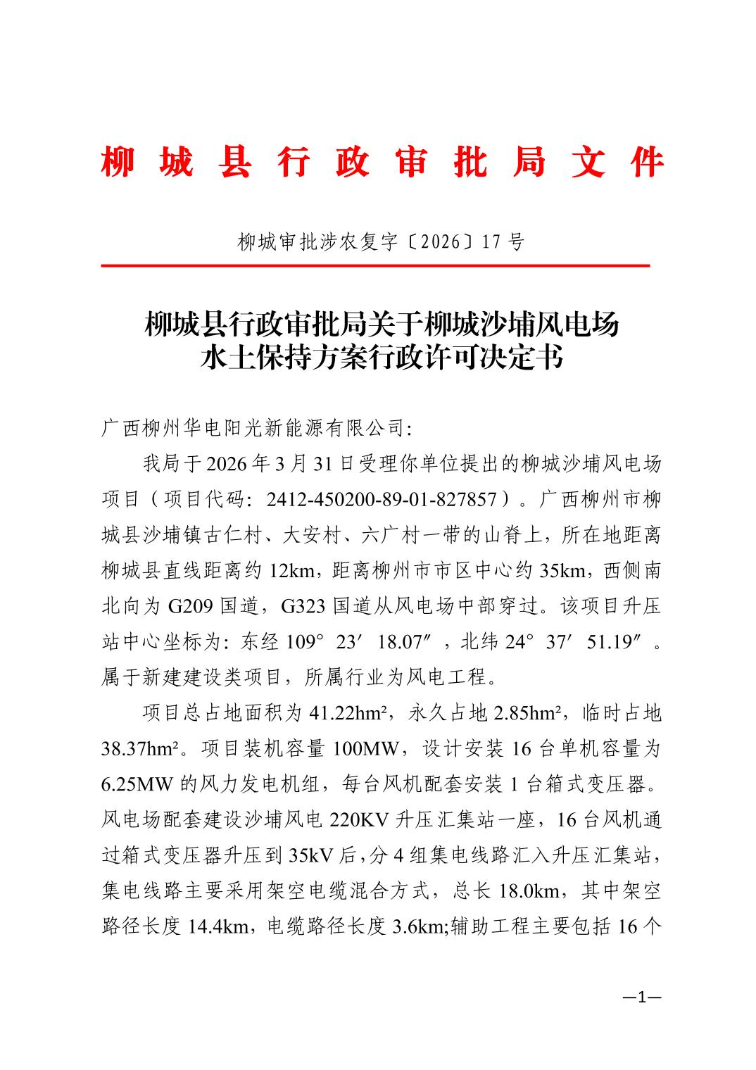 柳城县行政审批局关于柳城沙埔风电场水土保持方案行政许可决定书
