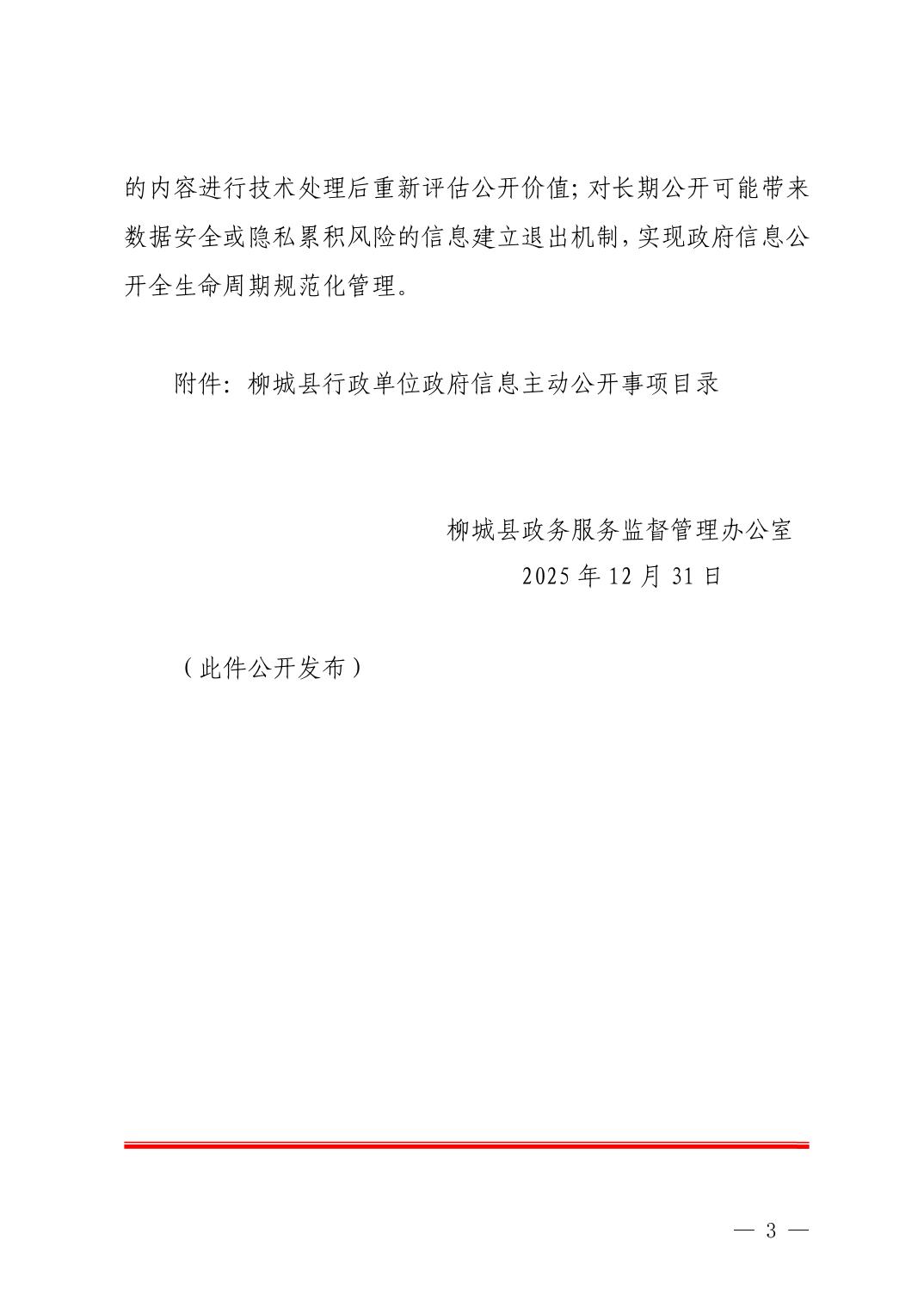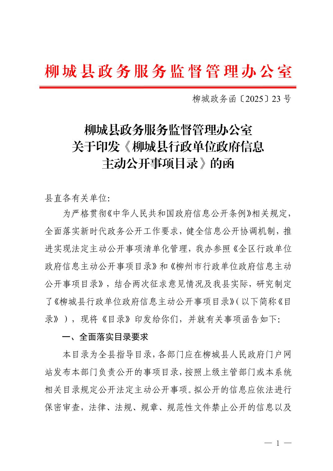 柳城县政务服务监督管理办公室关于印发《柳城县行政单位政府信息主动公开事项目录》的函