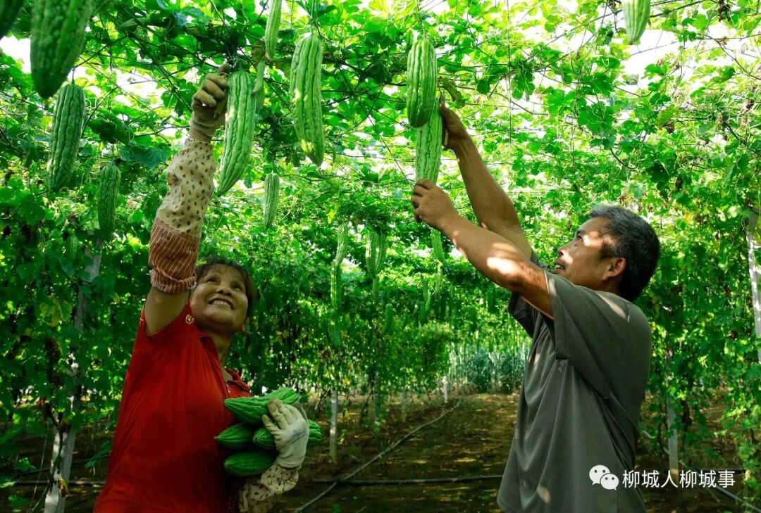在西安村黄家屯的一处苦瓜种植基地里,藤蔓上的苦瓜长势喜人,种植户黄运强一大早就起来采摘新鲜苦瓜。由于苦瓜个头粗大,略带清香,因此在采收季节,柳州海吉星的老板直接到田间地头收购苦瓜,运往各地进行销售。黄运强说,他目前已经销售了1万多斤的苦瓜,今年价格相较于去年略低,大约为0.5元每斤。