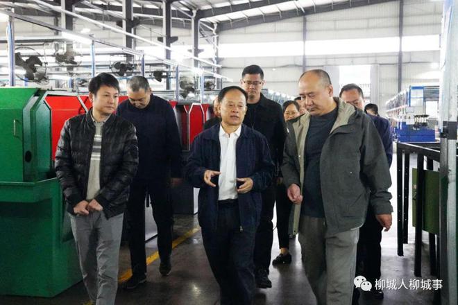 张建国一行先后来 到位于沙埔镇的柳州市正铆精密五金制品有限公司和位于大埔镇的柳州市国际生物健康科技产业园,调研企业生产项目、玻尿酸生产项目发展情况,了解企业生产建设情况以及存在的困难和问题。