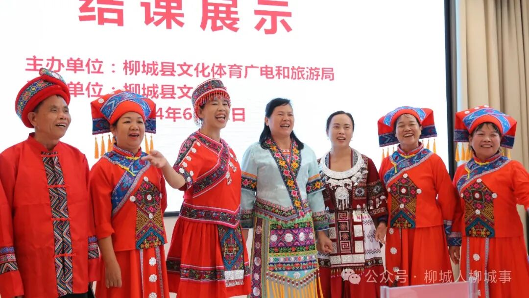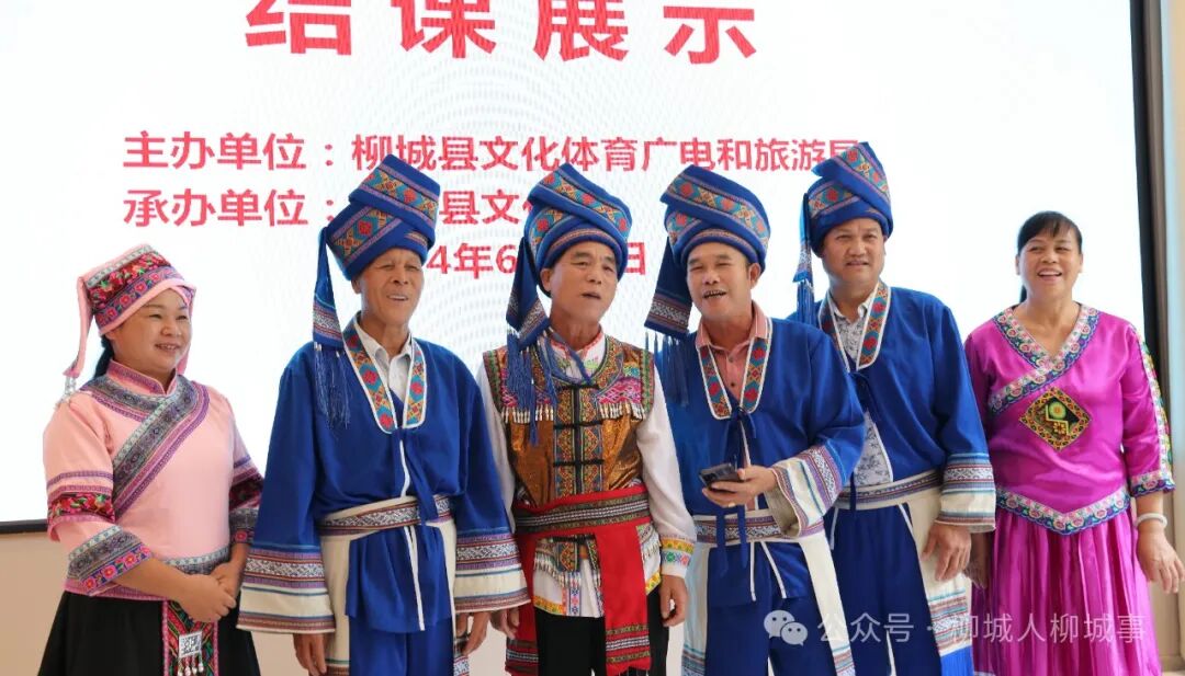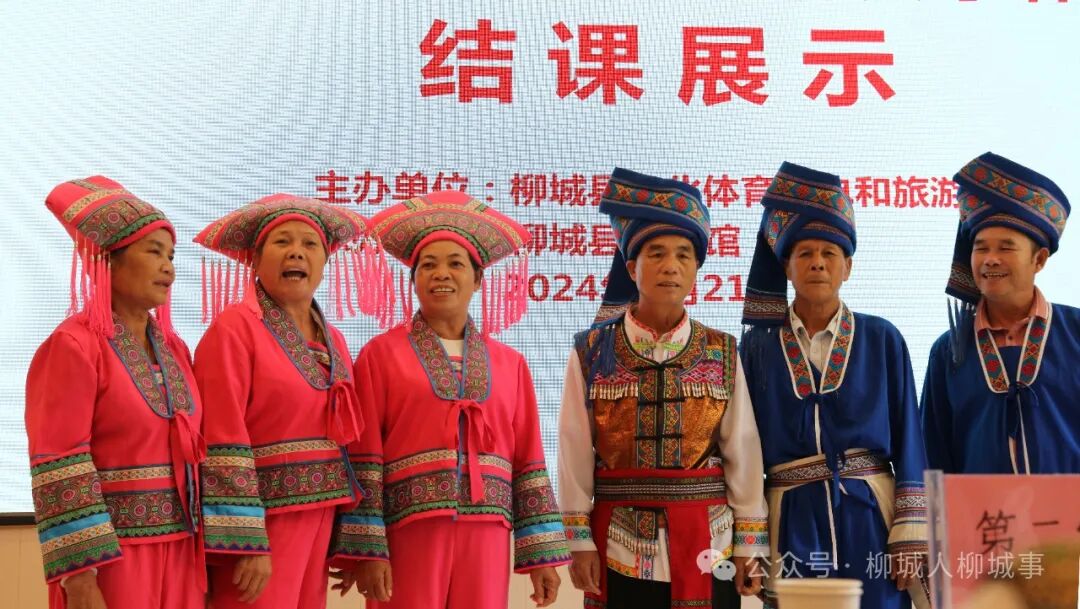 近日,柳城县2024年山歌创作人才培训班在县城紫荆花酒店举办,进一步打造柳城山歌文化品牌,提高柳城山歌爱好者对山歌的编、唱水平,培养一批山歌创作人才,壮大柳城山歌人才队伍。“民族团结紧,共同一条心,奋斗民族兴,永远心相连……”在培训班结业仪式上,学员们身着少数民族服饰,全面展示了他们在培训期间的所学所得。这些山歌旋律优美,歌声动人,充分展现了山歌的独特艺术魅力。本次培训班邀请了广西歌圩协会执行会长覃久宏老师进行授课。覃久宏围绕怎样编歌快又好、民族团结编歌法、学歌就学三姐歌等内容,系统讲述山歌平仄规律、押韵范例、赋比兴在山歌创作的运用,以及起承转合、对偶与排比结构等山歌艺术创作方法。培训中,覃久宏还通过举例,现场讲解理论知识并即兴示范山歌演唱。学员们踊跃加入互动,现场即兴编歌和演唱。“我非常荣幸能够参加本次的山歌培训班,从中可以学到很多的山歌知识。接下来,我将会运用自己所学习到的山歌知识,为柳城县的山歌发展作宣传和应有的贡献。”学员韦晓格说。柳城壮欢独具特色,尤以太平壮欢为佳,每年十月或十一月,太平镇都会举办壮欢大赛。作为“非物质文化遗产传承发展基地”,太平中心小学创建有壮欢社团,长期开办有壮欢班,培养出一届又一届会唱壮欢、热爱壮欢的学生,壮欢不仅走进了校园与课堂,还走出校门参加县内外各类文艺活动。近年来,柳城县十分重视柳城山歌的传承与发展。2009年至今,柳城县共申报有柳城山歌传承人6名,其中区级传承人2名,市级传承人3名以及县级传承人1名。2006年柳城山歌获评为自治区非物质文化遗产保护项目名录;2021年太平镇壮欢歌手罗建平荣获区级壮欢“歌王”称号。