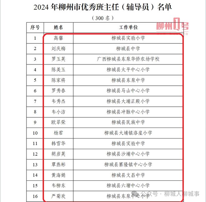 2024年柳州市优秀教育工作者名单。(部分节选)