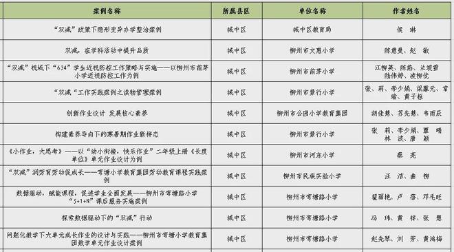 为进一步总结提炼“双减”工作“柳州经验”,日前,市“双减”办面向全市进行“双减”优秀实践案例征集,经各单位推荐、组织专家评审、综合评定,公示无异议,在479个案例中评选出120个案例为2024年柳州市第一批“双减”优秀实践案例。