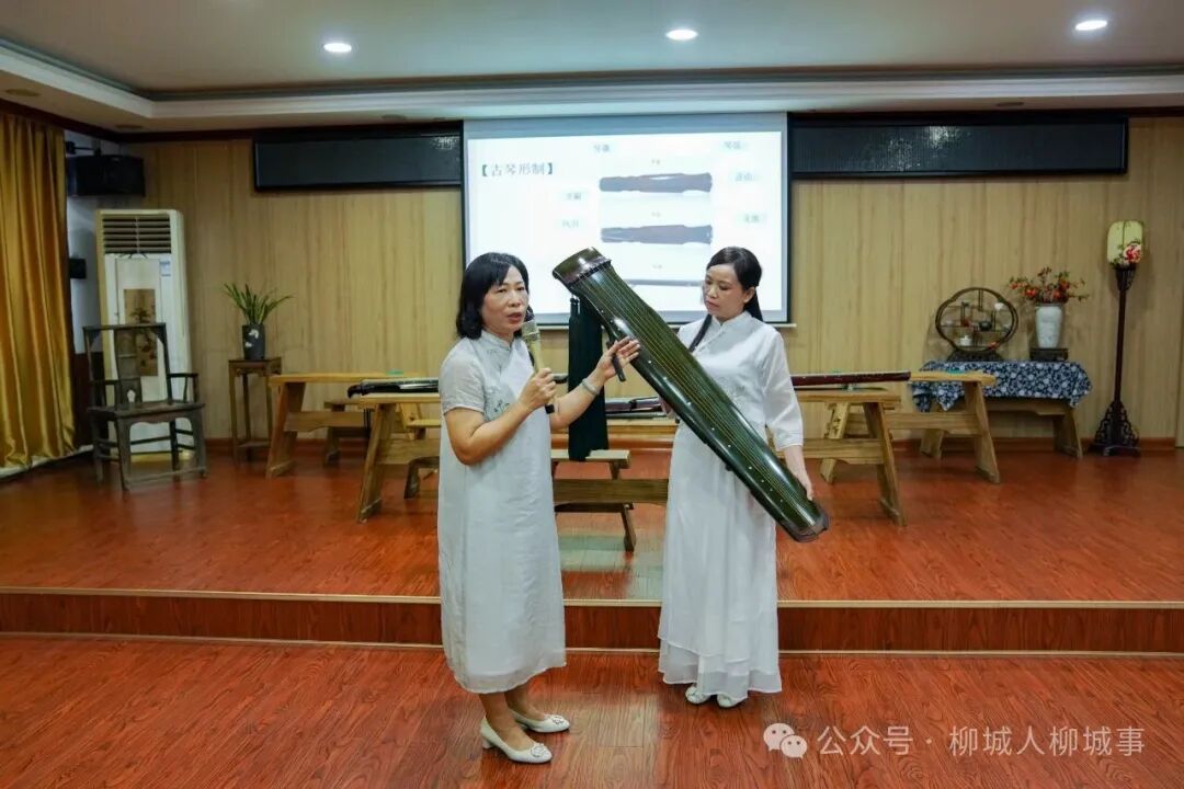活动由柳城县政协常委吕金凤担任主讲。她从古琴形制、文化历史、经典名曲切入,延伸至古琴与诗词的交融,通过深入浅出的讲解和引经据典的阐释,将古曲背后的历史故事娓娓道来,让大家系统了解了古琴的结构、指法及乐理知识。