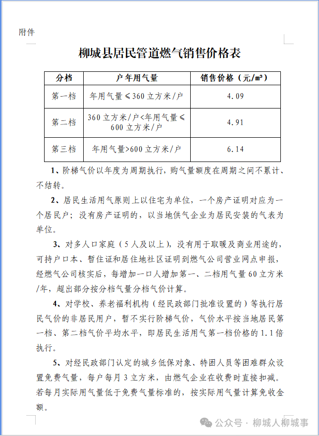 目前,县老法院宿舍部分住户已经通管道天然气。(下附柳城县居民管道燃气销售价格表)