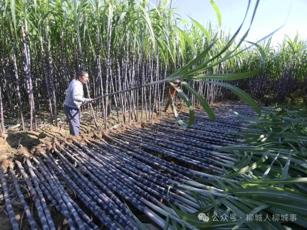初冬时节,11月13日,柳城县东泉镇对河村350多亩黑皮果蔗迎来丰收,种植户开始砍蔗供应市场。