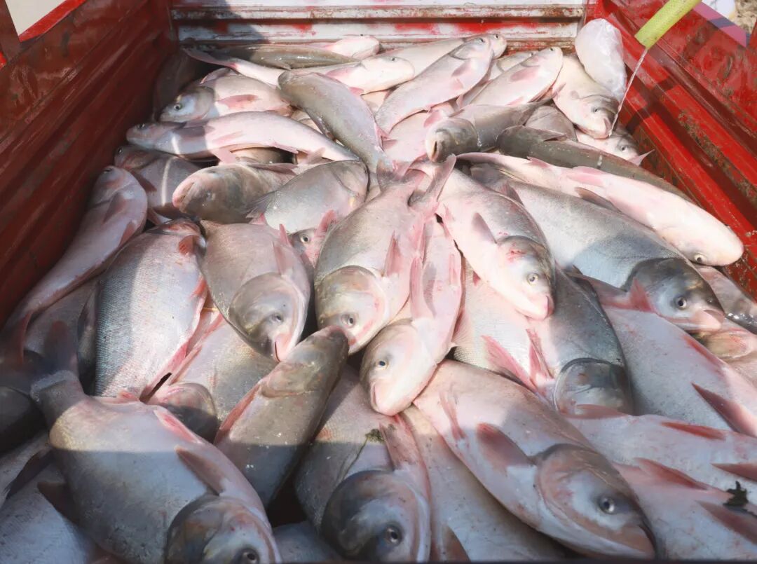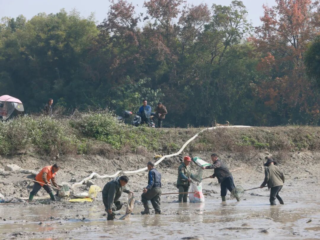 12月8日,柳城县古砦仫佬族乡云峰村梁八屯,各族群众相聚在村口鱼塘抓鱼、分鱼,共享丰收后的喜悦。