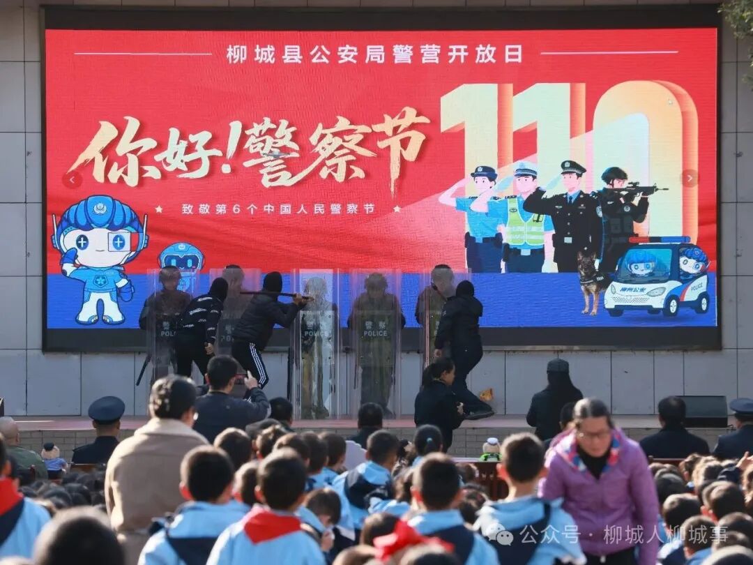 为迎接第六个中国人民警察节,1月8日,柳城县县政府办、县委政法委、公安局、检察院、法院等部门将警营“搬”进校园,通过一系列可感、可触、可参与的沉浸式体验,为师生们带来一堂生动警营体验课。