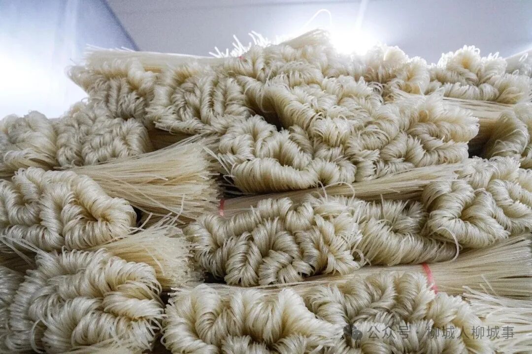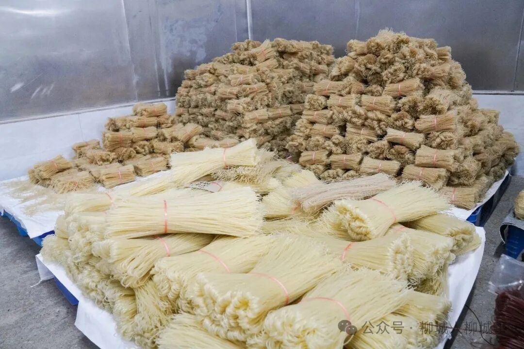 小编在生产车间看到,企业不仅生产普通米粉,还研发生产葛根米粉、红薯米粉、高粱米粉等多种特色产品,满足不同市场需求。其中,普通米粉以大米粉和玉米淀粉为原料,专门用于制作螺蛳粉,因添加玉米淀粉,口感Q弹、不易断、不糊汤;若用于制作桂林米粉,则无需添加玉米淀粉,批发价约2.5元每斤。