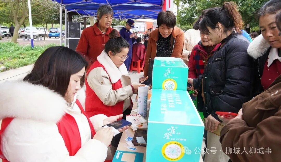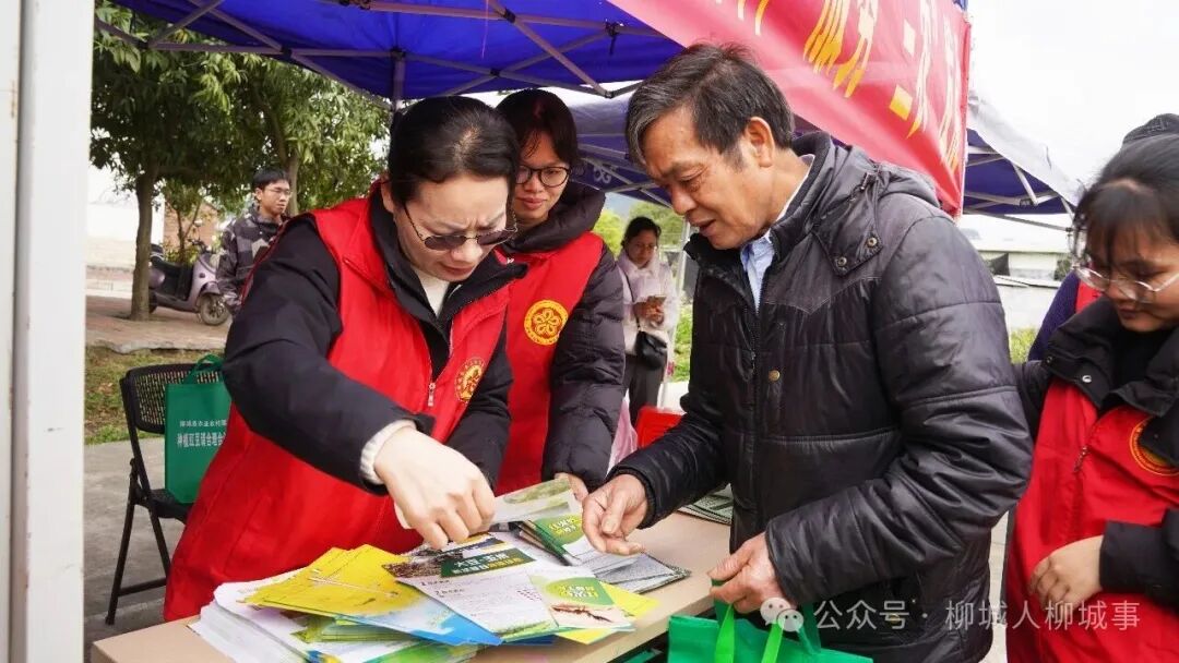 政策宣传区,柳城县市场监督管理局、县农业农村局、县妇女联合会等多部门联手,通过发放资料与现场讲解,普及维权、消防、禁毒及农产品安全等知识。