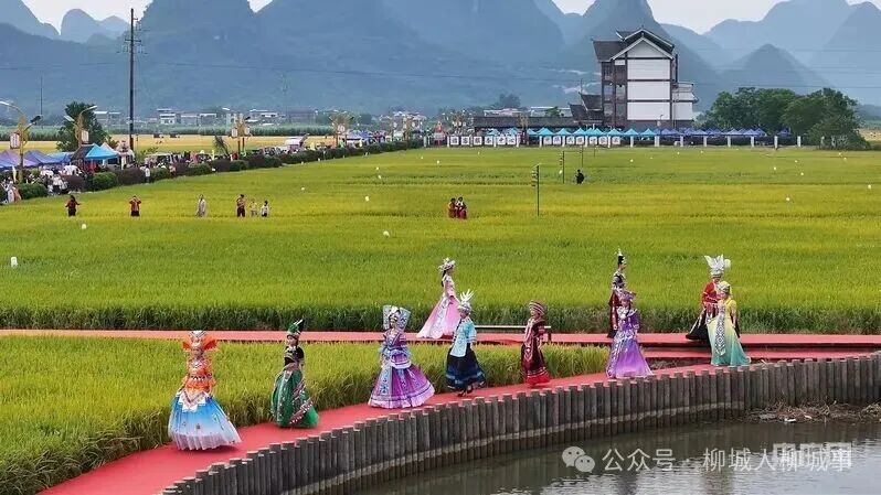 过去单一的稻米种植,如今已变身成鲜活的田园文旅新场景。春耕的育秧犁田、丰收的稻浪连片成景,搭配独特的仫佬族民俗风情,吸引着大批自驾游客前来打卡。游客们赏田园风光、品米制美食,带动周边餐饮、民宿等配套业态顺势兴起,让外出的村民留了下来,让乡土烟火气变成了实实在在的增收钱。