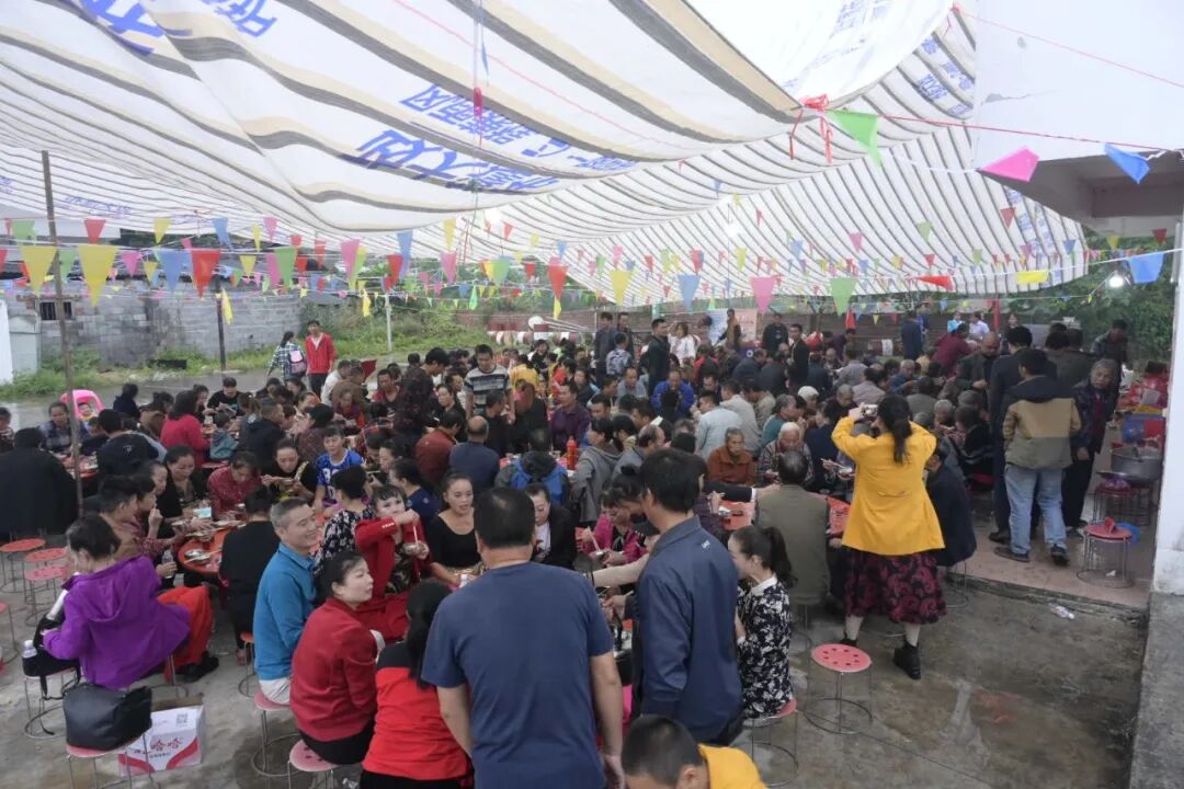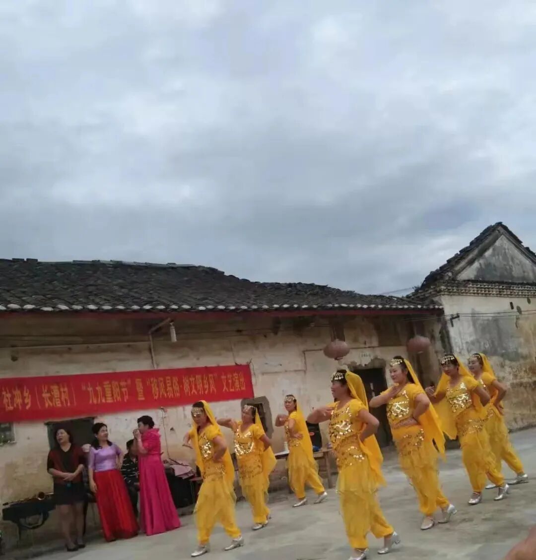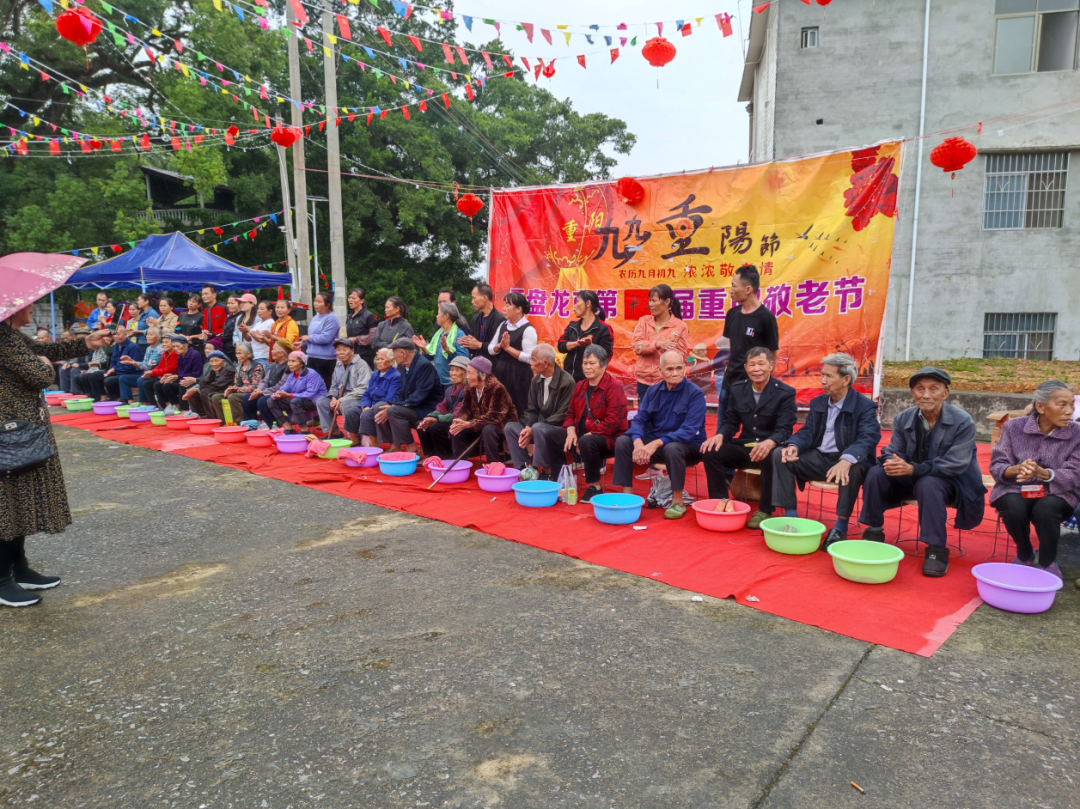 在冲江村,长漕村,洛文村老人们齐聚一堂,通过同赏文艺演出、吃敬老宴。