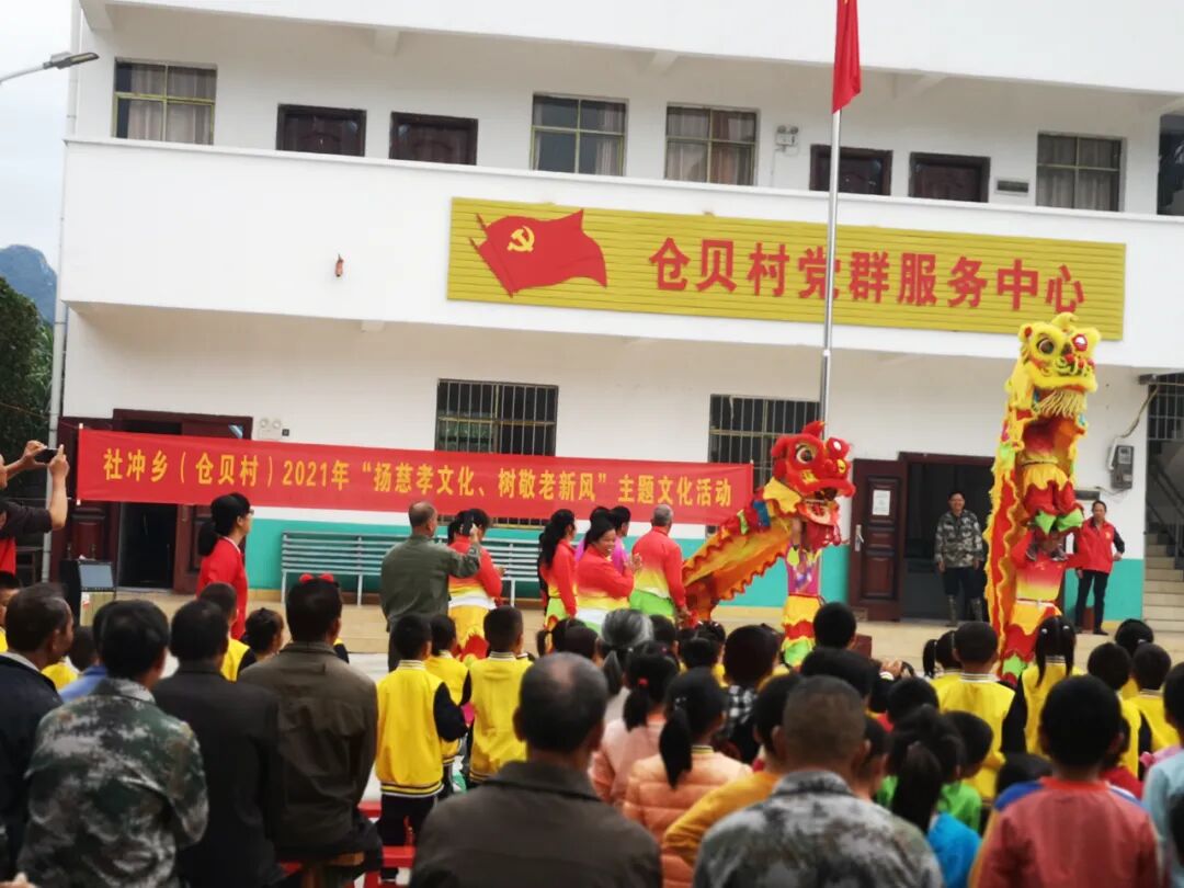 仓贝村给老人安排了传统民间艺术舞狮表演,在表演者的操纵下,狮子在空中腾挪跳跃,激昂奔放,栩栩如生;同时,孩子们给爷爷奶奶表演节目、按摩捶背,培养了敬重老人、关心老人的良好品质,老人们的脸上洋溢着笑容,在热闹和温暖中度过了美好的一天。