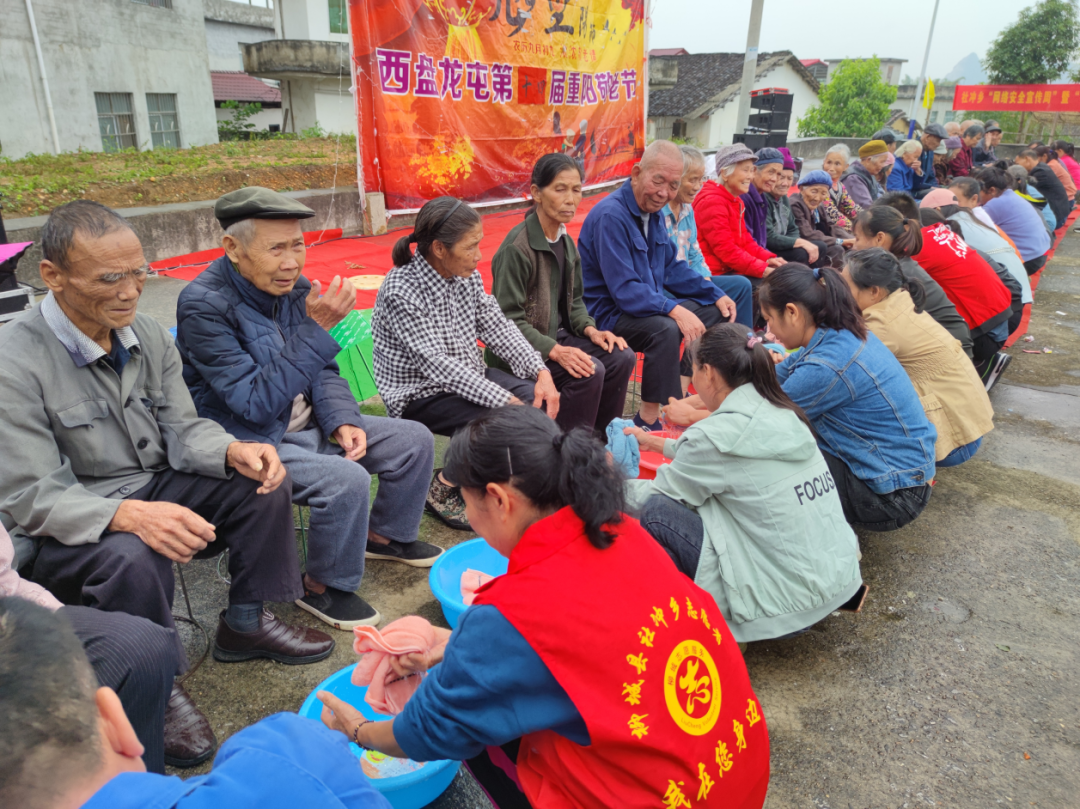 社冲村村民自发筹款4万元,为老人们准备了趣味游园、文艺演出、敬老宴等活动。村里60岁以上的老人整齐就座,由自家儿女上前为老人洗脚;敬老宴上,老人团团围坐,共话家常,送祝福,度过了欢乐的一天。