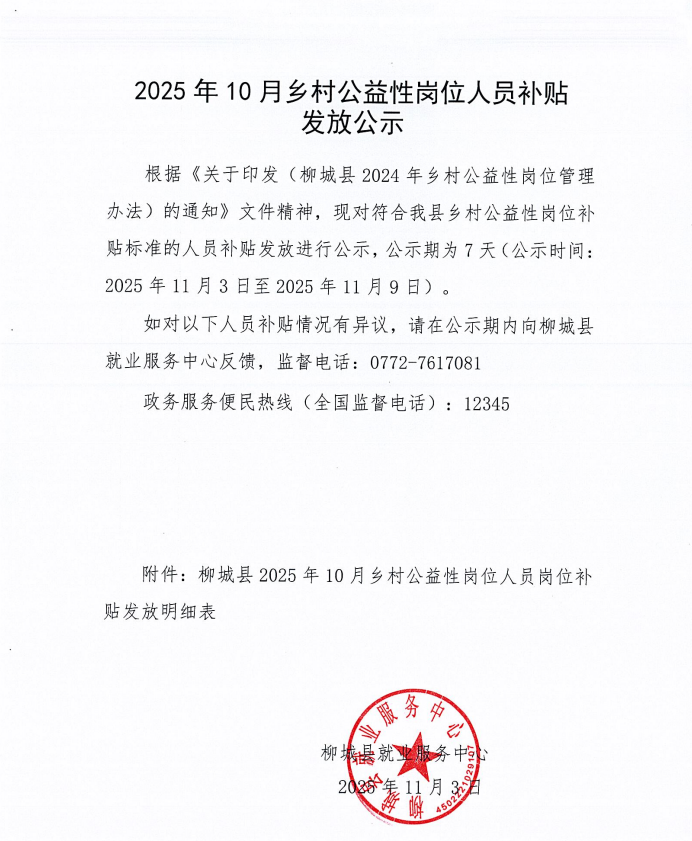 2025年10月乡村公益性岗位人员补贴发放公示