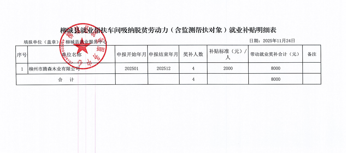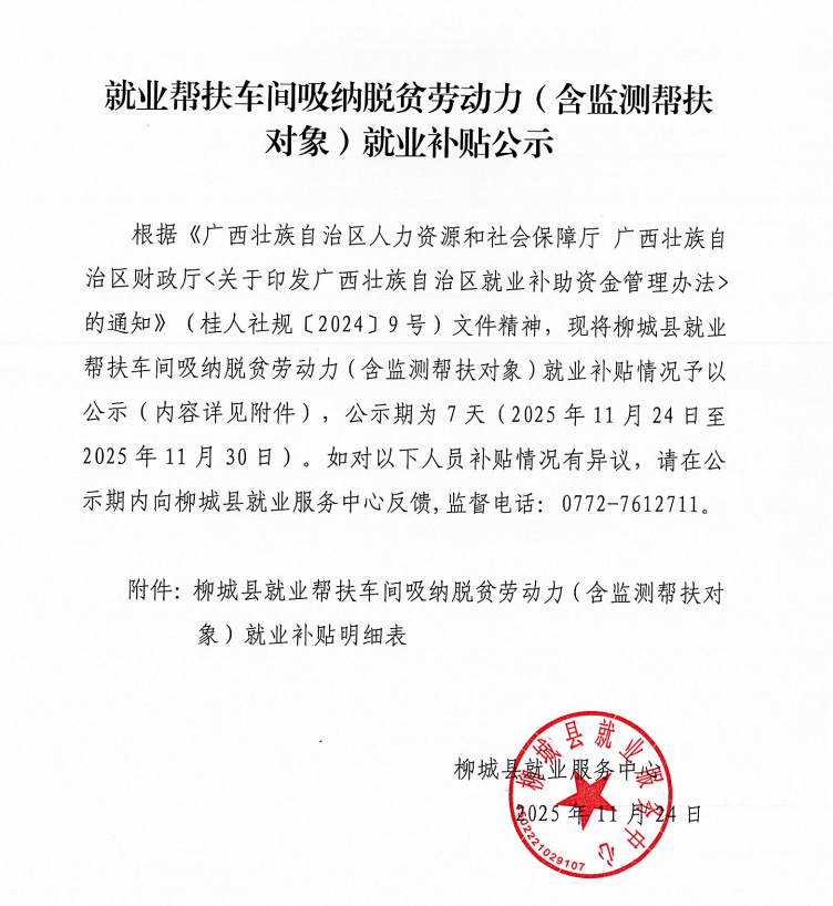 柳城县就业帮扶车间吸纳脱贫劳动力(含监测帮扶对象) 就业补贴公示