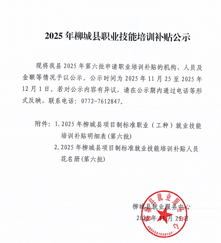 来源: 柳城县人力资源和社会保障局 | 发布日期: 2025-11-25 10:50 | 作者: