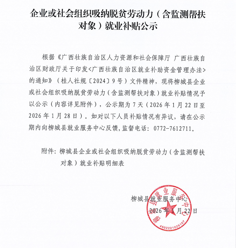 来源: 柳城县人力资源和社会保障局 | 发布日期: 2026-01-22 16:40 | 作者: