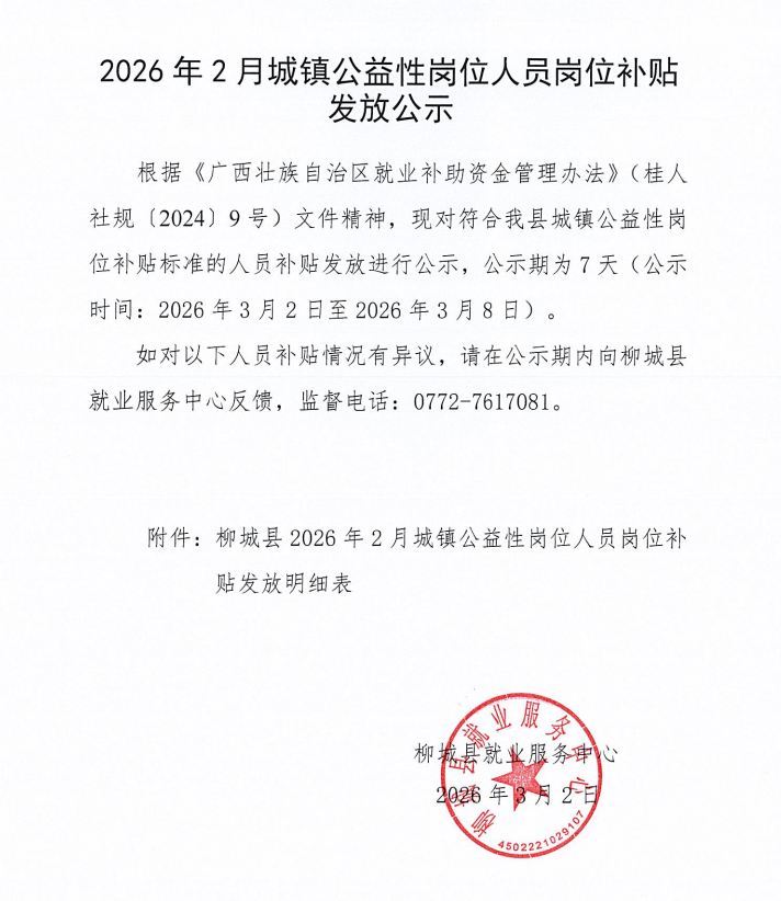 来源: 柳城县人力资源和社会保障局 | 发布日期: 2026-03-02 16:55 | 作者: