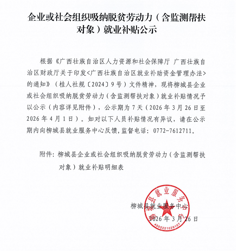 来源: 柳城县人力资源和社会保障局 | 发布日期: 2026-03-26 11:10 | 作者: