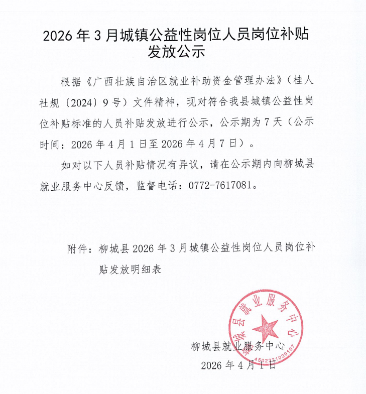 来源: 柳城县人力资源和社会保障局 | 发布日期: 2026-04-01 17:05 | 作者: