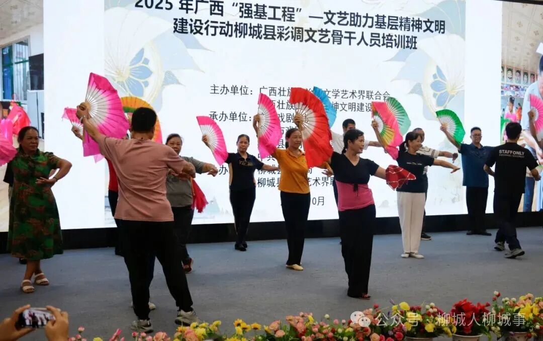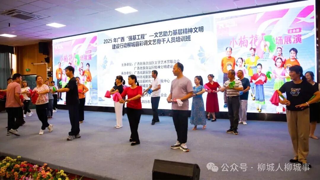 据了解,2025 年广西 “强基工程” 彩调文艺骨干培训班由柳城县新时代文明实践中心、县委宣传部、县文联联合主办,为期两天的培训吸引了全县70多名彩调爱好者参与。