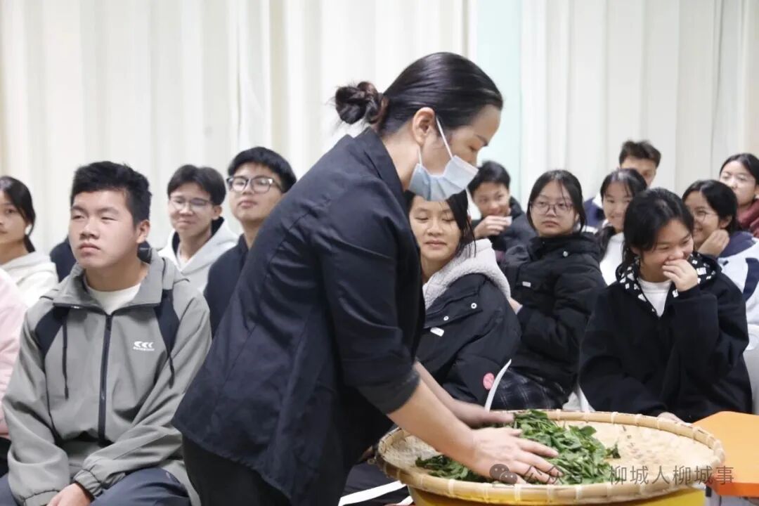 近日,柳城县实验高中开展了一堂别具特色的茶文化课。课堂上,老师以茶为引,讲述了“广西工匠”、柳城伏虎华侨农场茶厂厂长何海华二十七年扎根茶厂、潜心制茶的故事,并现场演示炒茶技艺,带领学生品鉴刚刚采摘并炒制的新茶,在茶香中感悟匠心与传承。