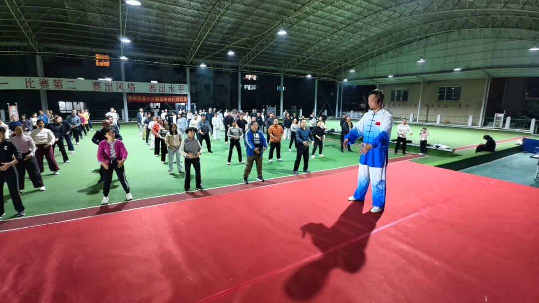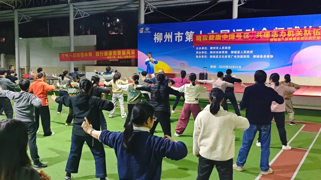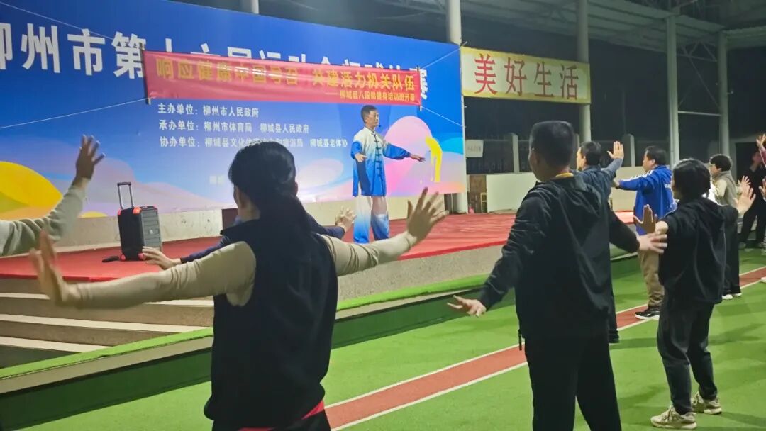 12月8日晚,为响应《健康中国2030规划纲要》全民健身号召,柳城县直机关八段锦健身培训班在老干部局门球场正式开班,约100名党员干部及工会会员开启健身学习之旅。