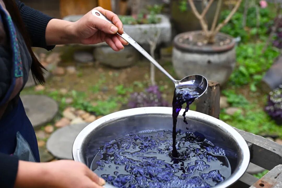 “从上山采摘植物到浸泡糯米染色,再到每种植物的用量和熬制时间、包粽子、蒸煮粽子,每一个环节都有讲究。”梁丝珍介绍,比如枫香树叶煮制黑色染料,需发酵过才能用于浸泡糯米;苏木熬制橙色染料,煮至汁液浓稠如红酒色,冷却后即可浸泡;黄饭花煮黄色染料,煮好的汁液金黄透亮,浸泡效果最佳;紫兰草(红蓝草)制紫色染料,汁液遇糯米自然呈现温润紫晕;白色则选用优质糯米,保留米香本味……