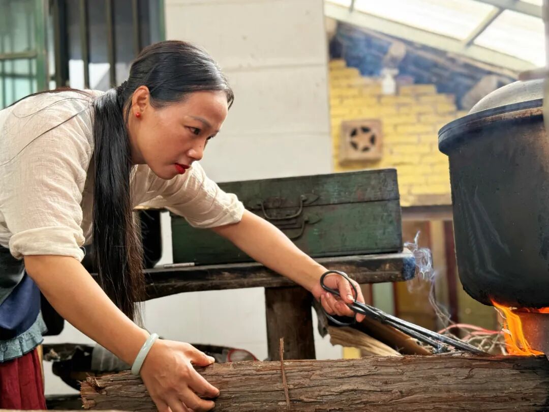 梁丝珍说,最后一道工序就是将包好的粽子放入柴火灶大锅中煮,慢火炖煮4-5小时。“柴火要保持火力,中途不能加水,这样煮出的粽子才软糯不夹生,草木香和米香才能完全融合”。
