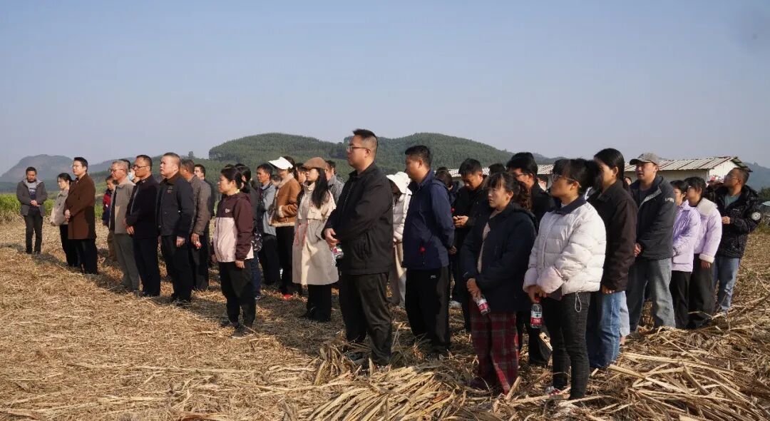 12月30日上午,柳城县2025年秋冬季秸秆综合利用蔗叶机械打捆离田作业现场观摩会在柳城县马山镇四塘三队召开。
