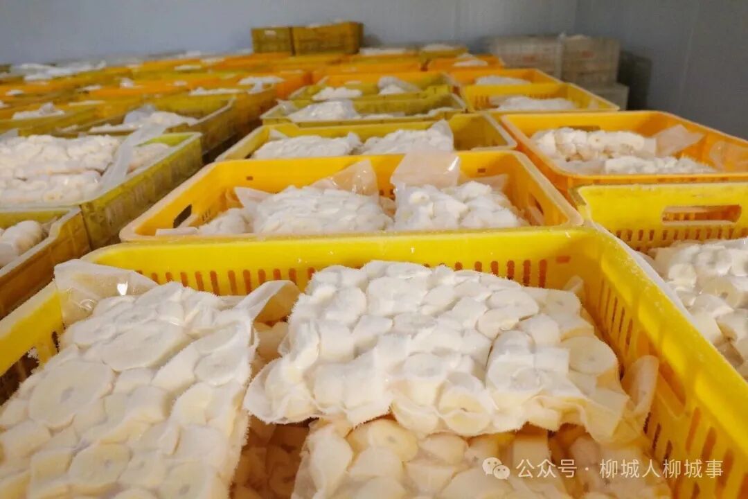 在加工车间,一条条自动化生产线有序运转。木薯经过水洗、去皮、毛滚机清洗、气泡清洗、人工分拣,按客户需求进行真空包装,并在零下25℃环境下速冻锁鲜,精准对接螺蛳粉店、甜品店对木薯的不同需求。