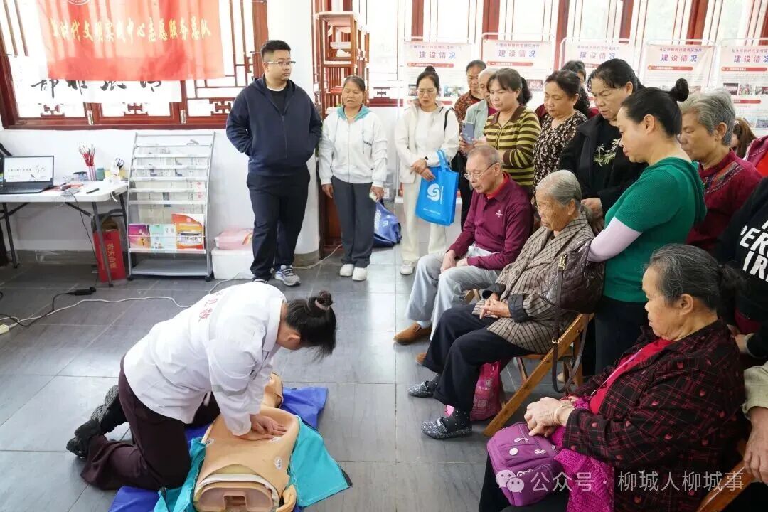 现场,柳城县中医医院专家团队结合老年养生书籍用共读方式开展健康阅读分享,用接地气的语言从四季养生、心态与情绪调节、常见的疾病预防等知识传授给老年朋友们。为让健康知识更接地气、更易实操,专家还现场带领老年朋友们学习八段锦、心肺复苏、防止异物卡喉等急救知识,老人们精神饱满、跟着练习、踊跃互动,现场氛围轻松又热闹。