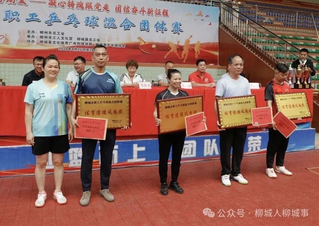 4月25日至26日,柳城县总工会2026年“中国梦·劳动美——凝心铸魂跟党走 团结奋斗新征程”职工乒乓球混合团体赛在县体育馆火热开赛并圆满收官。来自南宁、梧州、桂林、来宾、河池等多地,以及柳州各县区、柳城县各乡镇基层的56支代表队齐聚赛场,以球会友、以赛聚力,在挥洒汗水中展现昂扬风貌,在激烈角逐中弘扬体育精神。