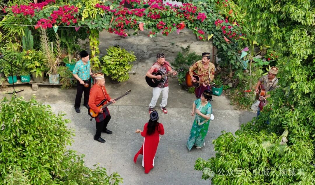 这两个充满东南亚异国风情节目的演奏者,是来自柳城华侨农场本土的柳侨WL弹唱乐队。乐队中的王锦威、王敬瑞、林庆胜是印尼归侨、侨眷,林松、李昌平两人则是越南归侨。