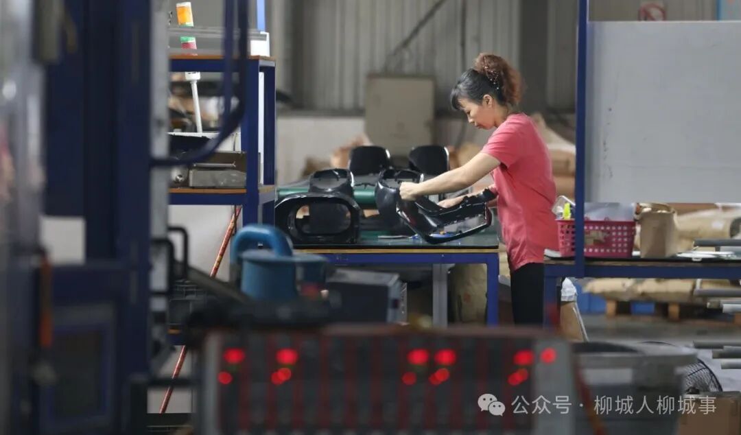 10月15日,位于柳城县工业园沙埔片区的柳城塑创科技发展有限公司,90多个工人忙着赶制汽车后扰流板、行李架等产品,各车间一派忙碌的景象。