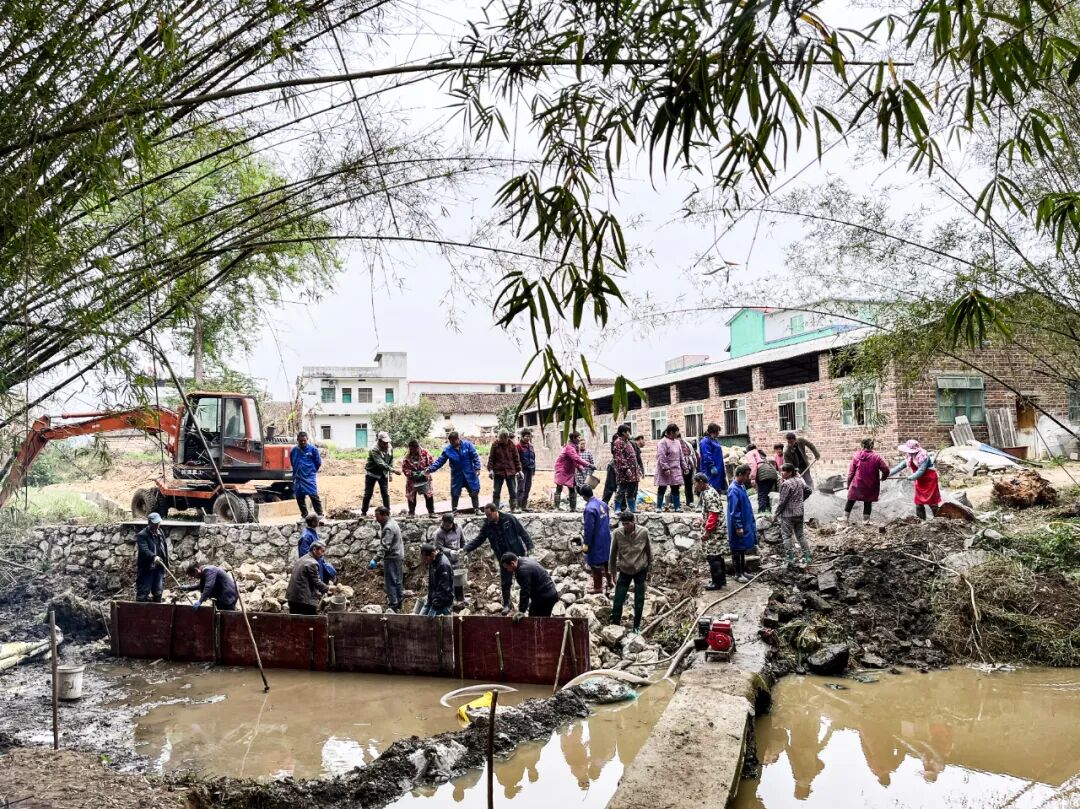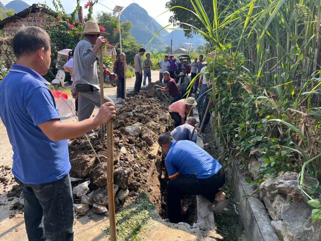 2023年,天气持续干旱,村民们连洗衣服都成了难题。韦桂全灵机一动,想到屯里有条常年闲置的小河,便提议在此修建洗衣台。消息一经在村民群发布,立刻得到全屯响应,有钱的出钱、有力的出力,家里有钩机的村民主动免费提供设备。施工期间,大家一起挖基坑、搬石板,汗水浸湿了衣衫,鞋上的补丁也被磨得更明显。短短几天时间,一个整洁实用的洗衣台就建成了。如今,每天都有村民来到这里洗衣唠嗑,不仅将水资源利用起来,还大大方便村民用水。