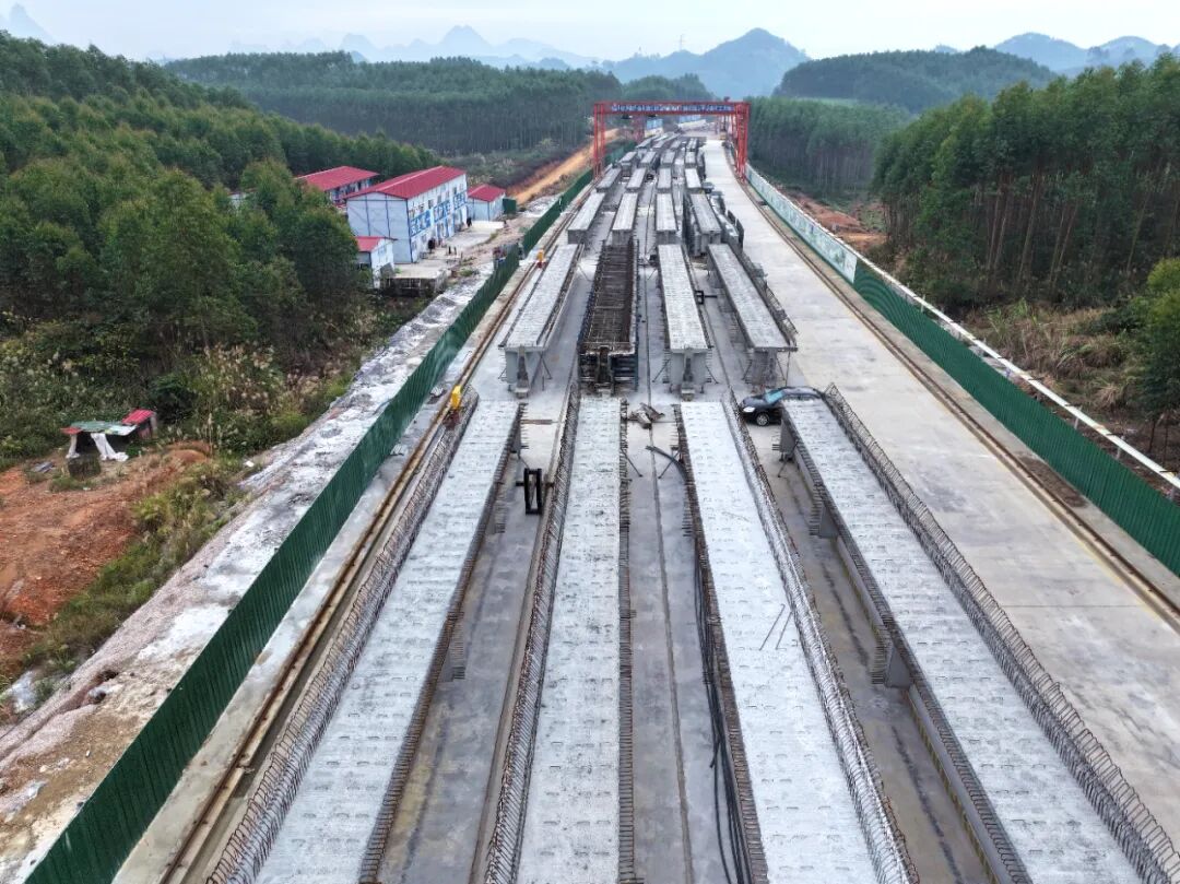 在融江特大桥附近的3号预制梁场,工人们忙着浇灌预制梁;在凉水山桥施工现场,工人抓紧焊接桥面围栏钢筋、打磨桥梁围栏模块,全线建设有序推进。目前,罗鹿高速整体施工进度已完成70%,为2026年竣工通车打好基础。