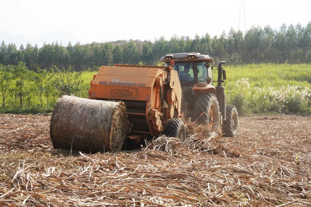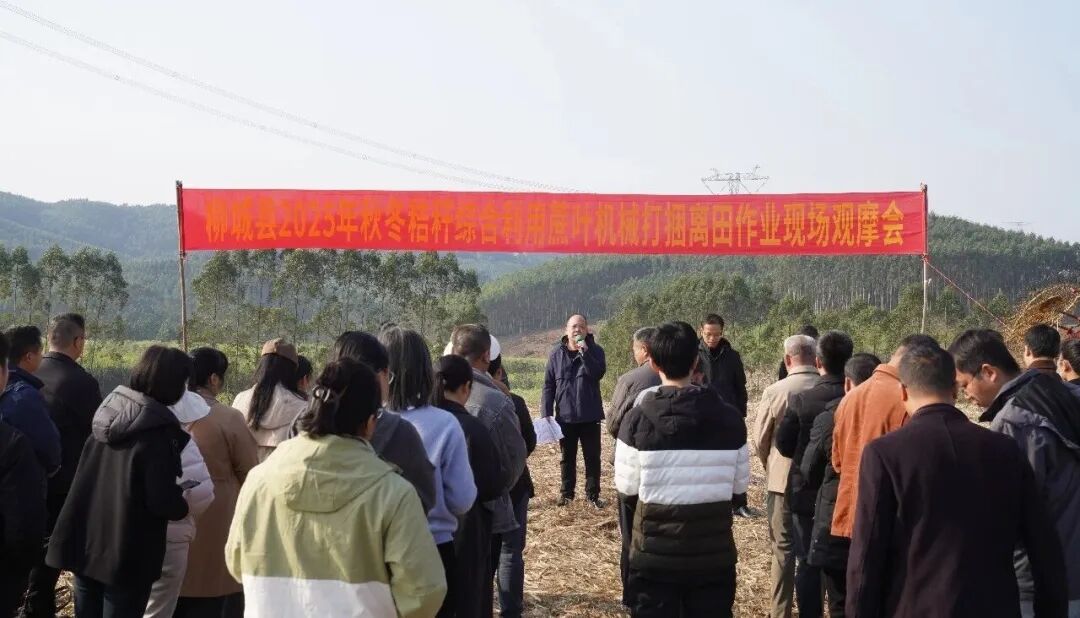 12月30日上午,柳城县2025年秋冬季秸秆综合利用蔗叶机械打捆离田作业现场观摩会在柳城县马山镇四塘三队召开。