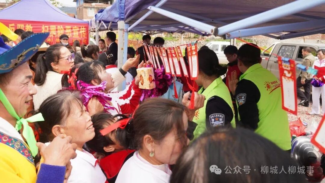 政策宣传区,柳城县市场监督管理局、县农业农村局、县妇女联合会等多部门联手,通过发放资料与现场讲解,普及维权、消防、禁毒及农产品安全等知识。