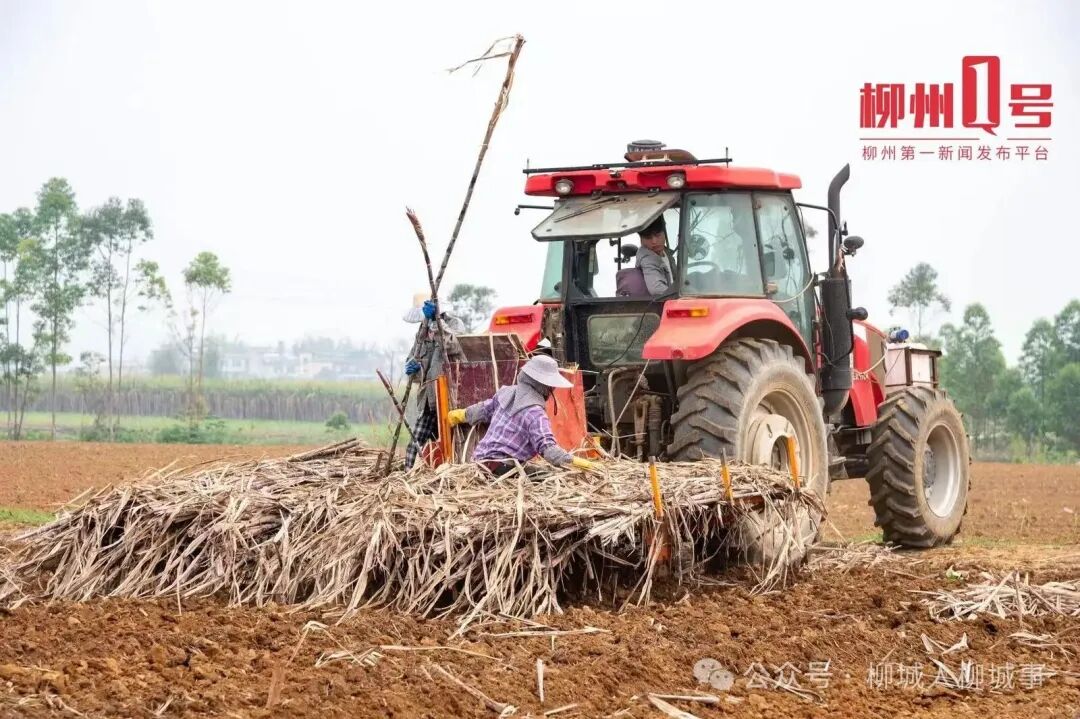 眼下正值春植蔗播种关键期。近日,柳城县太平镇太平园艺场甘蔗种植户莫志敏,清晨八点多便和家人来到田间,开始一天的播种作业。田间机器轰鸣、一派繁忙景象,三人分工默契协作:两人在后方投放蔗种,一人负责操控农机行进。莫志敏的蔗田早已告别传统人工种植模式,采用1.8米宽行距搭配北斗导航智能农机,种蔗高效又省心。